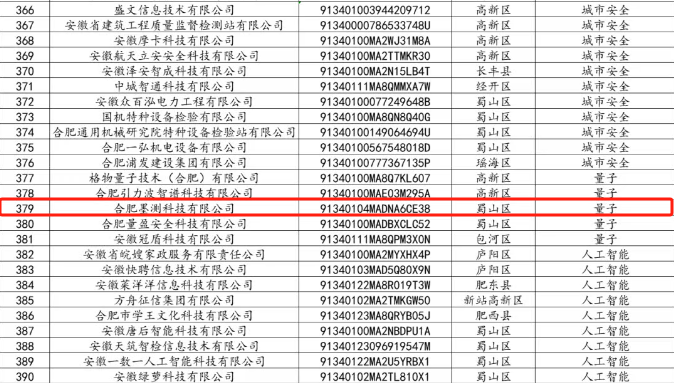 关于2025年度合肥市重点产业链企业(第一批)新入库企业的公示